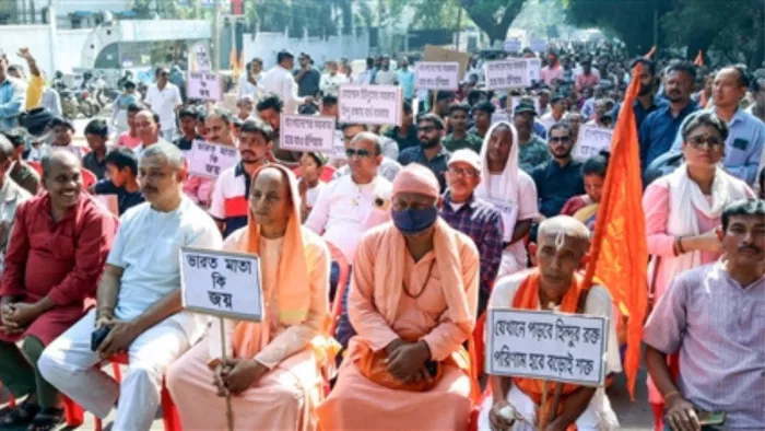 बांग्लादेश में चिन्मय दास प्रभु समेत कई पुजारियों को गिरफ्तार कर लिया गया है। राधारमण दास ने ये भी दावा किया कि चिन्मय दास के वकील रमण रॉय को इतना पीटा गया कि वह आईसीयू में जिंदगी मौत की जंग लड़ रहे हैं।