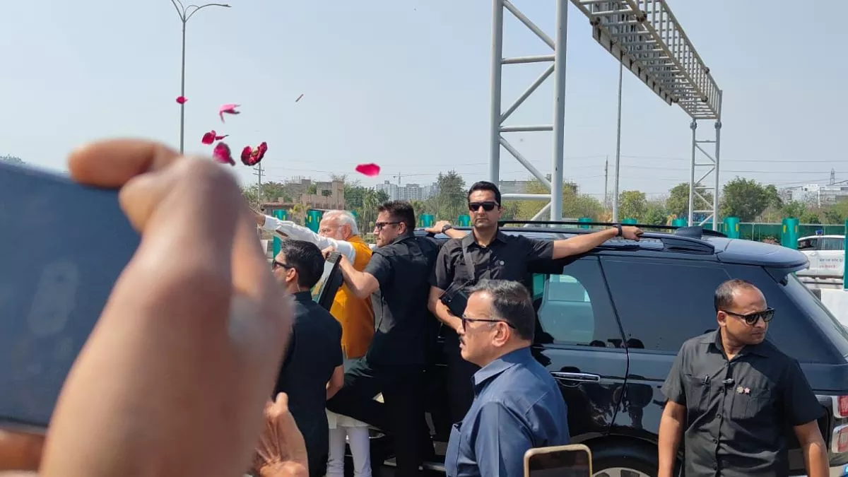 -प्रधानमंत्री के रोड शो के दौरान एक्सप्रेस-वे किनारे हजारों की संख्या में लोग मौजूद रहे।