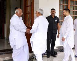 Rajasthan politics : बुधवार को बिहार के मुख्यमंत्री नीतीश कुमार और डिप्टी सीएम तेजस्वी यादव कांग्रेस नेता मल्लिकार्जुन खरगे से मिलने उनके दिल्ली स्थित निवास पर पहुंचे। कांग्रेस नेता राहुल गांधी इस दौरान खरगे के साथ ही मौजूद रहे। सभी नेता विपक्षी एकता के मुद्दे को लेकर आपस में बैठक कर रहे थे। इस दौरान सिर्फ तेजस्वी ने कुछ नहीं बोला बाकी सभी नेताओं ने अपना-अपना पक्ष रखा। सभी विपक्षी नेताओं ने एकजुट होने पर सहमति दी है।