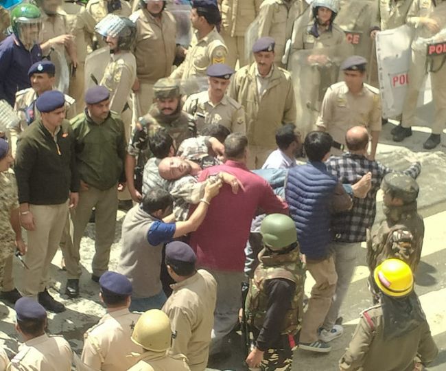 संजौली मस्जिद विवाद में कई हिंदू संगठनों का प्रदर्शन जारी है। भारी संख्या में जुटे प्रदर्शनकारियों ने चक्का जाम किया। प्रदर्शनकारी पुलिस के द्वारा लगाए गए बैरिकेडिंग तोड़कर मस्जिद की ओर बढ़ने लगे हैं। पुलिस लगातार वाटर कैनन और लाठीचार्ज के जरिए प्रदर्शनकारियों को रोकने की कोशिश कर रही है। हिंदू जागरण मंच के अध्यक्ष कमल गौतम सहित दो लोगों को पुलिस ने गिरफ्तार कर लिया है। कमल गौतम मस्जिद के पास जाने की कोशिश कर रहे थे।