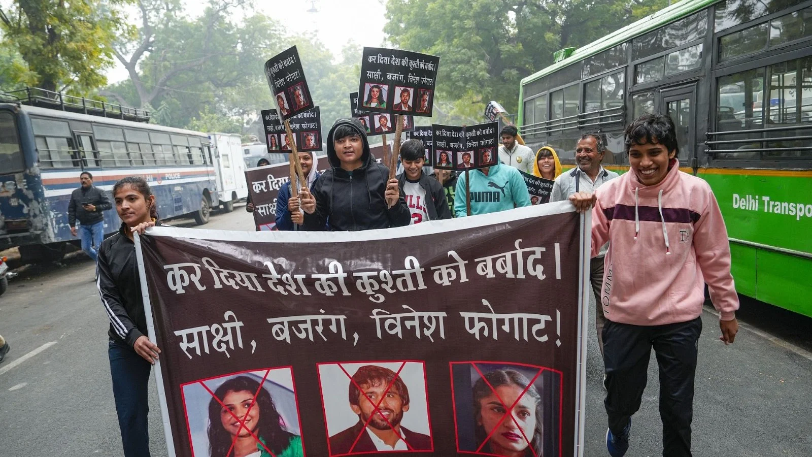लगभग 300 लोग छपरौली, बागपत में आर्य समाज अखाड़े से आए थे, जबकि कई अन्य नरेला में वीरेंद्र कुश्ती अकादमी से आए थे। कई लोग अभी भी बसों में भरे हुए हैं। सभी अपने सहयोगियों के साथ प्रदर्शन (Wrestling) में शामिल होने की योजना बना रहे हैं। सुरक्षाकर्मियों को उन्हें नियंत्रित करने के लिए संघर्ष करना पड़ रहा है। वह बजरंग, साक्षी और विनेश के खिलाफ नारे लगा रहे हैं। प्रदर्शनकारियों के हाथ में बैनर थे जिन पर लिखा था, ”यूडब्ल्यूडब्ल्यू हमारी कुश्ती को इन तीन पहलवानों से बचाएं।”