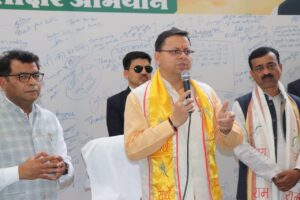 रूद्रपुर/देहरादून: Signature Campaign मुख्यमंत्री श्री पुष्कर सिंह धामी ने गुरुवार को राधा स्वामी सत्संग व्यास रुद्रपुर में प्रतियोगी परीक्षाओं की तैयारी कर रहे अभ्यर्थियों एवं विद्यार्थियों द्वारा आयोजित हस्ताक्षर अभियान में प्रतिभाग किया। मुख्यमंत्री द्वारा प्रतियोगी परीक्षाओं में पारदर्शिता एवं सुचिता को सुनिश्चित कराने के लिए राज्य में नकल विरोधी कानून लाये जाने पर प्रतियोगी परीक्षाओं की तैयारी कर रहे अभ्यर्थियों एवं विद्यार्थियों ने मुख्यमंत्री का आभार व्यक्त किया।