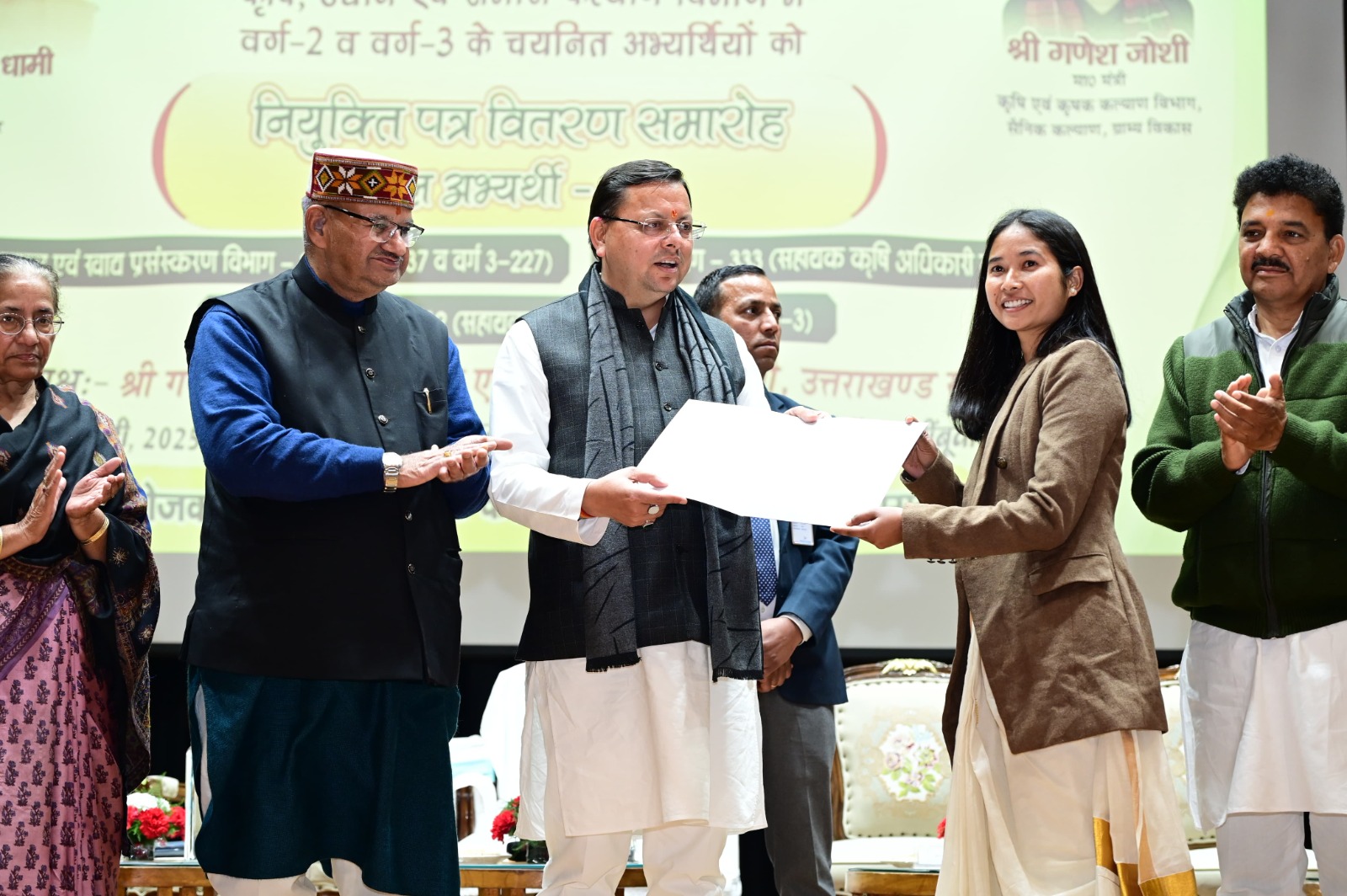 देहरादून : Uttarakhand government job मुख्यमंत्री श्री पुष्कर सिंह धामी ने शनिवार को हिमालयन सांस्कृतिक ऑडिटोरियम गढ़ीकैंट में कृषि, उद्यान, समाज कल्याण विभाग में चयनित कुल 609 अभ्यर्थियों को नियुक्ति पत्र प्रदान किए। जिसमें 333 सहायक कृषि अधिकारी, उद्यान एवं खाद्य प्रसंस्करण विभाग में वर्ग 2 के 37 व वर्ग 3 के 227 तथा 12 सहायक समाज कल्याण अधिकारी शामिल हैं।